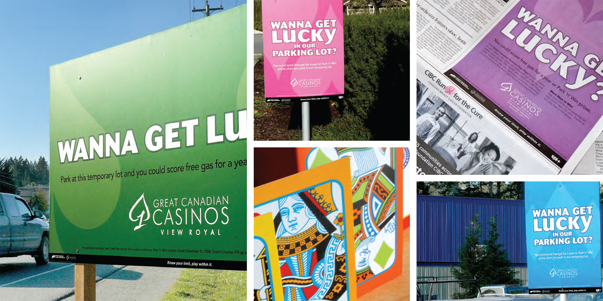The “Wanna Get Lucky?” concept was deployed across multiple channels including outdoor signage, print advertising, radio spots, on-site wayfinding, rewards cards, and supporting collateral. The messaging repositioned the temporary disruption as an exciting incentive-driven experience, maintaining brand energy and driving sustained participation throughout construction.